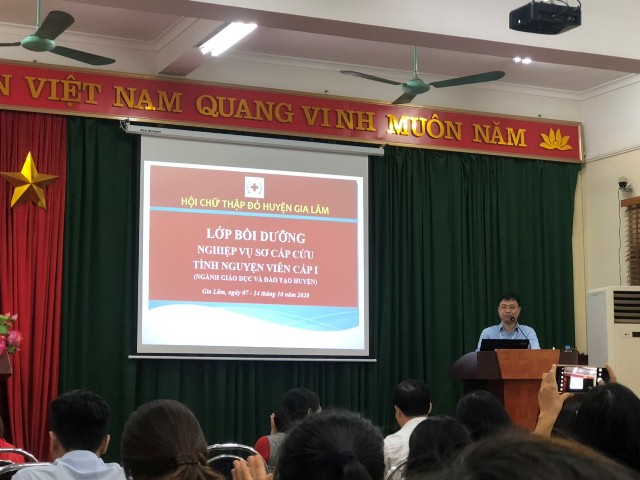 Ngày 07/10/2020, Hội chữ thập đỏ Huyện Gia Lâm, Phòng Giáo dục – đào tạo phối hợp với Trung tâm bồi dưỡng chính trị Huyện tổ chức lớp tập huấn tình nguyện viên sơ cấp cứu cấp 1 cho đại diện lãnh đạo quản lý và nhân viên y tế học đường của 82 trường THCS, Tiểu học và Mầm non trên địa bàn huyện. Mỗi lớp diễn ra trong 3 ngày. Về dự và chỉ đạo lớp tập huấn, đồng chí Hoàng Việt Cường- Huyện ủy viên, Trường phòng GD & đào tạo huyện đánh giá đây là một nội dung rất cần thiết và quan trọng đối với khối trường học. Đồng chí cũng yêu cầu các học viên tham gia lớp học nghiêm túc, nắm bắt các nội dung, kỹ năng sơ cấp cứu và sau khóa học, các học viên sẽ là các tình nguyện viên sơ cấp cứu nòng cốt truyền thông về phòng chống tai nạn thương tích, tập huấn sơ cấp cứu tại 100% các trường học trên địa bàn. Đại diện cho trường TH Kiêu Kỵ tham gia lớp tập huấn có đồng chí Vũ Thị Vân - phó Hiệu trưởng nhà trường và đồng chí Vũ Thị Hoàng Anh - nhân viên y tế nhà trường.