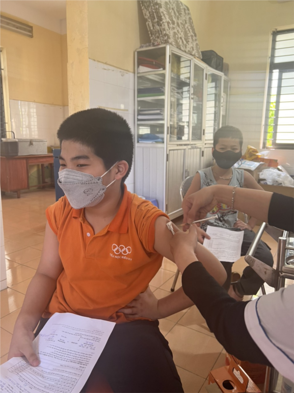 Ngày 19/4, trường Tiểu học Kiêu Kỵ phối hợp với trạm Y tế xã Kiêu Kỵ đã tổ chức tiêm mũi 1 vắc xin phòng COVID-19 cho trẻ em lớp 5 - 10 tuổi đang học tại trường. Theo ghi nhận, công tác tiêm chủng được tổ chức chu đáo, đúng quy trình. HS vui mừng khi đi tiêm chủng và được theo dõi 30 phát sau tiêm. Buổi tiêm diễn ra an toàn, hiệu quả. Chiều qua đã có 60 HS lớp 5 được tiêm mũi 1. Dưới đây là một số hình ảnh trong buổi tiêm chủng.