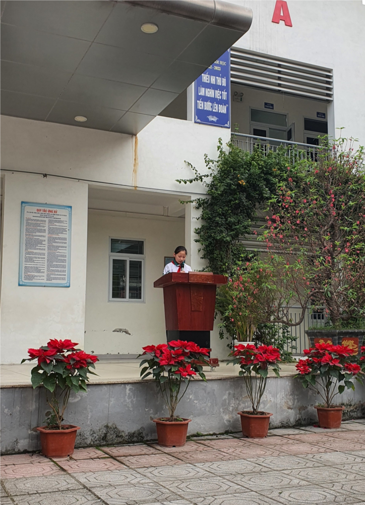 Sáng thứ hai ngày 13/2/2023, trong giờ chào cờ đầu tuần em Đinh Thị Minh Hằng- học sinh lớp 5D đã gửi tới các thầy cô giáo và các bạn HS bài tuyên truyền: