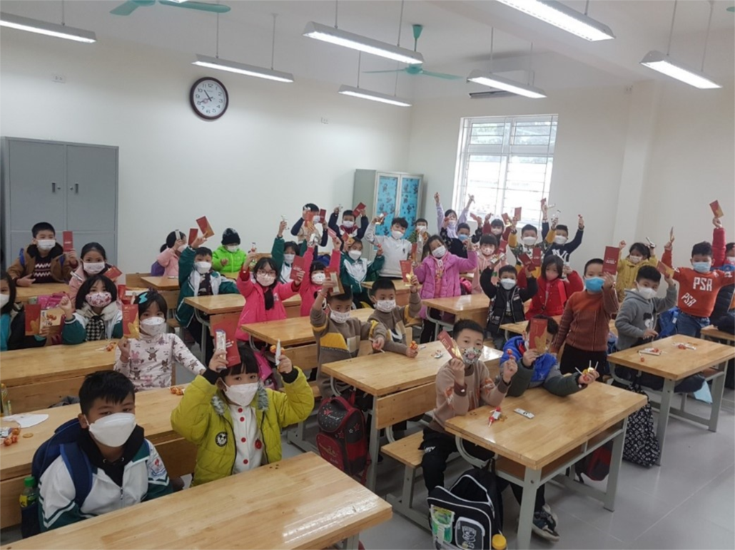 Các bạn đều rất háo hức khi được nhận quà…