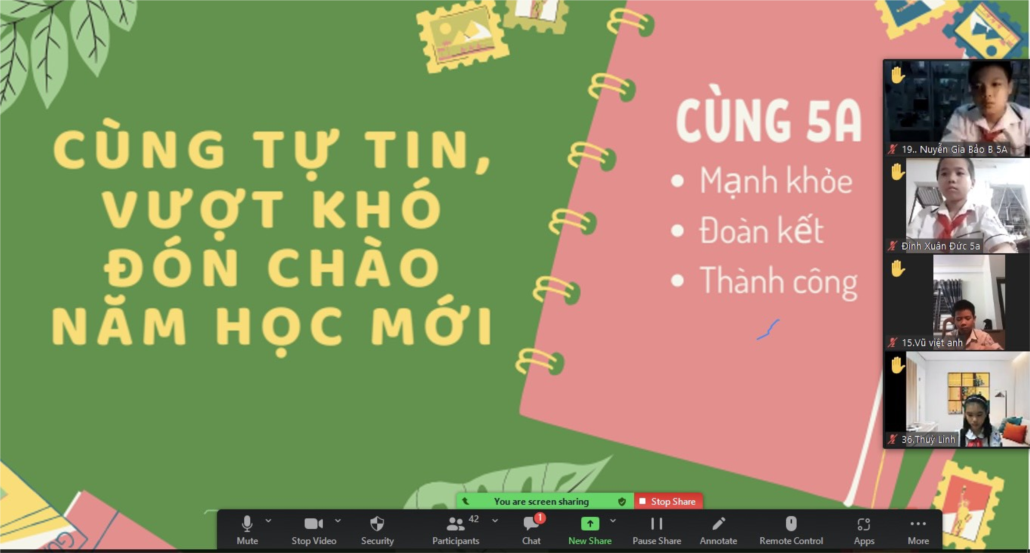 Mùa thu ngày khai trường luôn là ngày mà các bạn nhỏ mong chờ với bao niềm mơ ước, háo hức. Năm nay, khi cả đất nước đang trong những ngày tháng khó khăn vì dịch Covid 19, ngày khai trường đến với các con học sinh thật đặc biệt. Các con cùng bố mẹ dõi theo lễ khai giảng qua truyền hình, cùng đón những giờ phút đầu tiên của năm học mới với cô và các bạn qua Zoom.