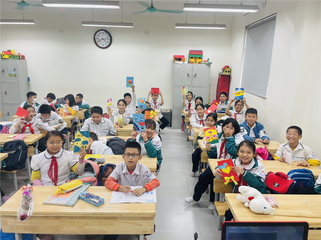 Với sự hướng dẫn tận tình của giáo viên chủ nhiệm cùng với những nguyên liệu đơn giản, dễ kiếm, thân thiện với môi trường như giấy bìa, giấy màu, kéo, bút màu, keo dán… các con học sinh được tự tay cắt dán và trang trí một tấm thiệp thật sinh động, được tự tay viết những lời chúc, lời yêu thương dành cho mẹ của mình. Những lời chúc bình dị, những nét chữ đáng yêu, nắn nót thể hiện tình cảm chân thành chính là món quà vô cùng ý nghĩa. Chắc hẳn mẹ của các con sẽ cảm thấy rất vui khi nhận được món quà do chính con mình làm tặng. Đây là món ăn tinh thần không gì có thể thay thế được.