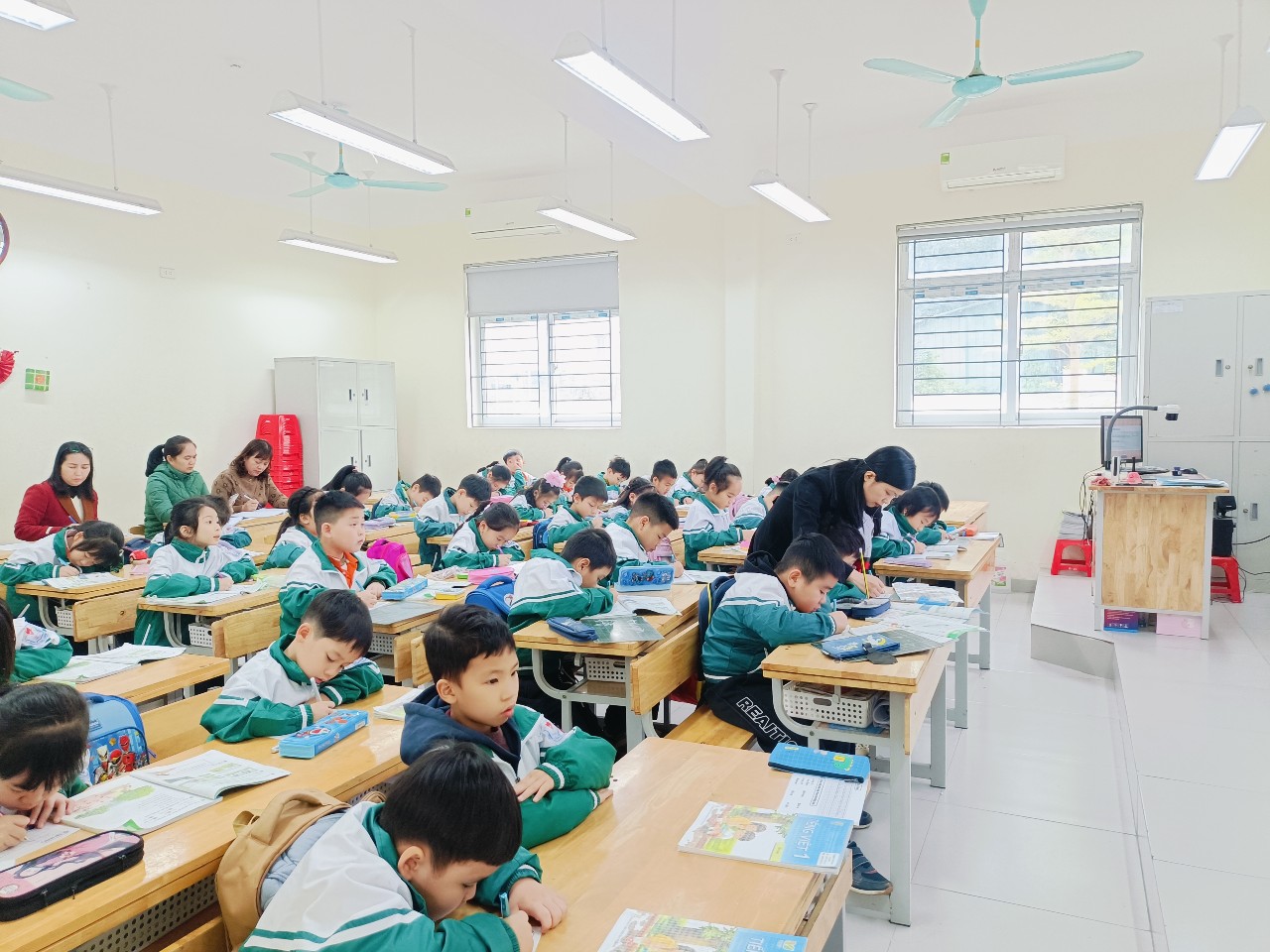 Theo kế hoạch, giáo viên các khối lớp tham gia dự giờ và trao đổi chuyên môn ở một số bộ môn. Tiết Tiếng Anh lớp 3E do đồng chí Bùi Thị Thu Hương thực hiện với bài Unit 11: My family – Lesson 1 mang đến không khí học tập sôi nổi, phát huy khả năng giao tiếp và phản xạ ngôn ngữ cho học sinh. Ở khối 1, tiết Tiếng Việt lớp 1D do đồng chí Nguyễn Thị Bích giảng dạy với bài Tôi là học sinh lớp 1 (tiết 4) được triển khai mạch lạc, ứng dụng phương pháp trực quan, giúp học sinh tự tin phát âm, đọc và hiểu nội dung bài học.