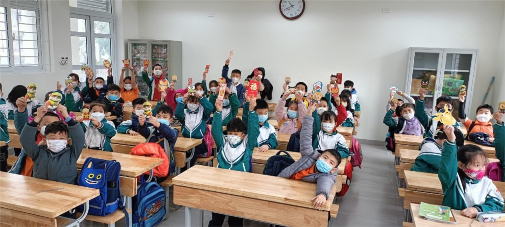 Trước khi vào trường, học sinh được đo thân nhiệt, sát khuẩn tay đầy đủ để đảm bảo an toàn. Trong thời gian học ở trường, tất cả giáo viên và học sinh đều phải thực hiên nghiêm túc việc đeo khẩu trang. Mặc dù vậy, không khí lớp học vẫn rất sôi nổi và hào hứng.