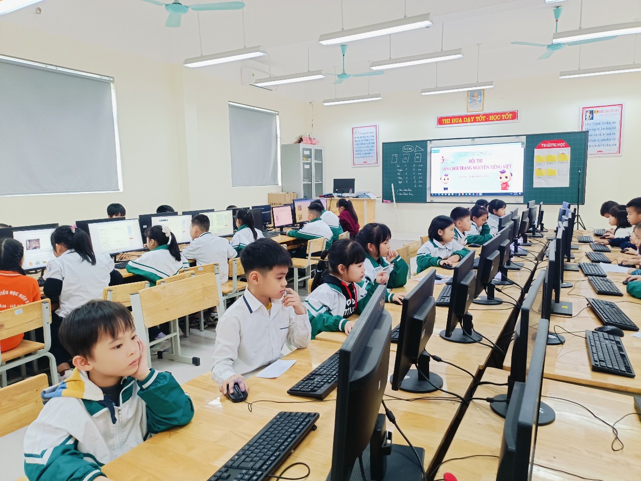 Trong thời gian làm bài, học sinh thực hiện bài thi trên hệ thống trực tuyến với cấu trúc bám sát chương trình giáo dục tiểu học, chú trọng phát triển năng lực tiếng Việt, tư duy ngôn ngữ và kỹ năng vận dụng kiến thức vào tình huống thực tiễn. Công tác tổ chức, giám sát được nhà trường triển khai theo đúng quy định, đảm bảo khách quan và công bằng cho các thí sinh.