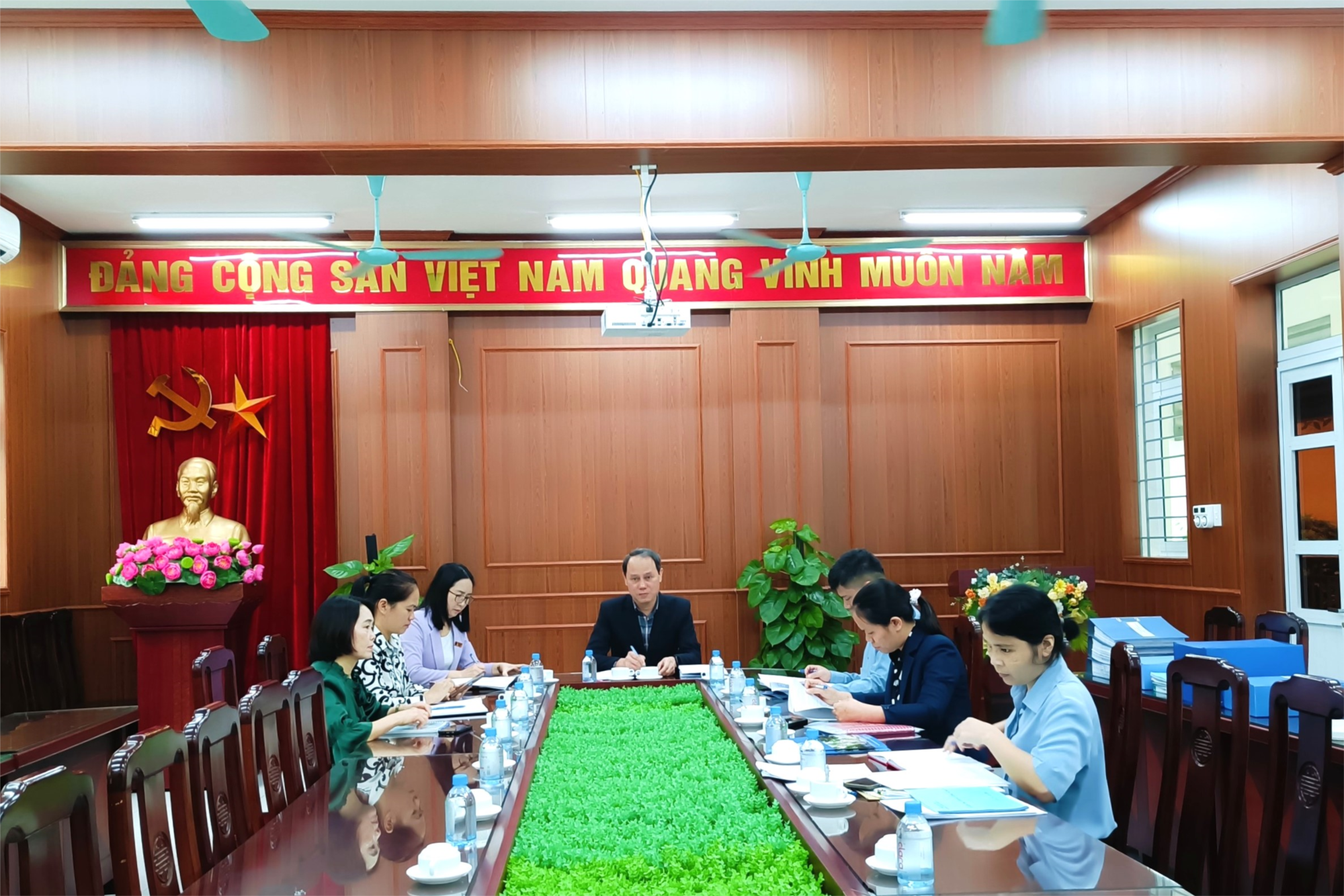 Tại buổi làm việc, đại diện Chi bộ và Ban Giám hiệu nhà trường đã báo cáo đầy đủ các nội dung theo đề cương giám sát, tập trung vào công tác lãnh đạo, chỉ đạo; việc xây dựng kế hoạch tổ chức bán trú; quy trình đảm bảo an toàn vệ sinh thực phẩm; công tác phối hợp giữa nhà trường, đơn vị cung cấp suất ăn và phụ huynh học sinh. Đồng thời, nhà trường cũng cung cấp đầy đủ hồ sơ, tài liệu liên quan phục vụ Đoàn giám sát.